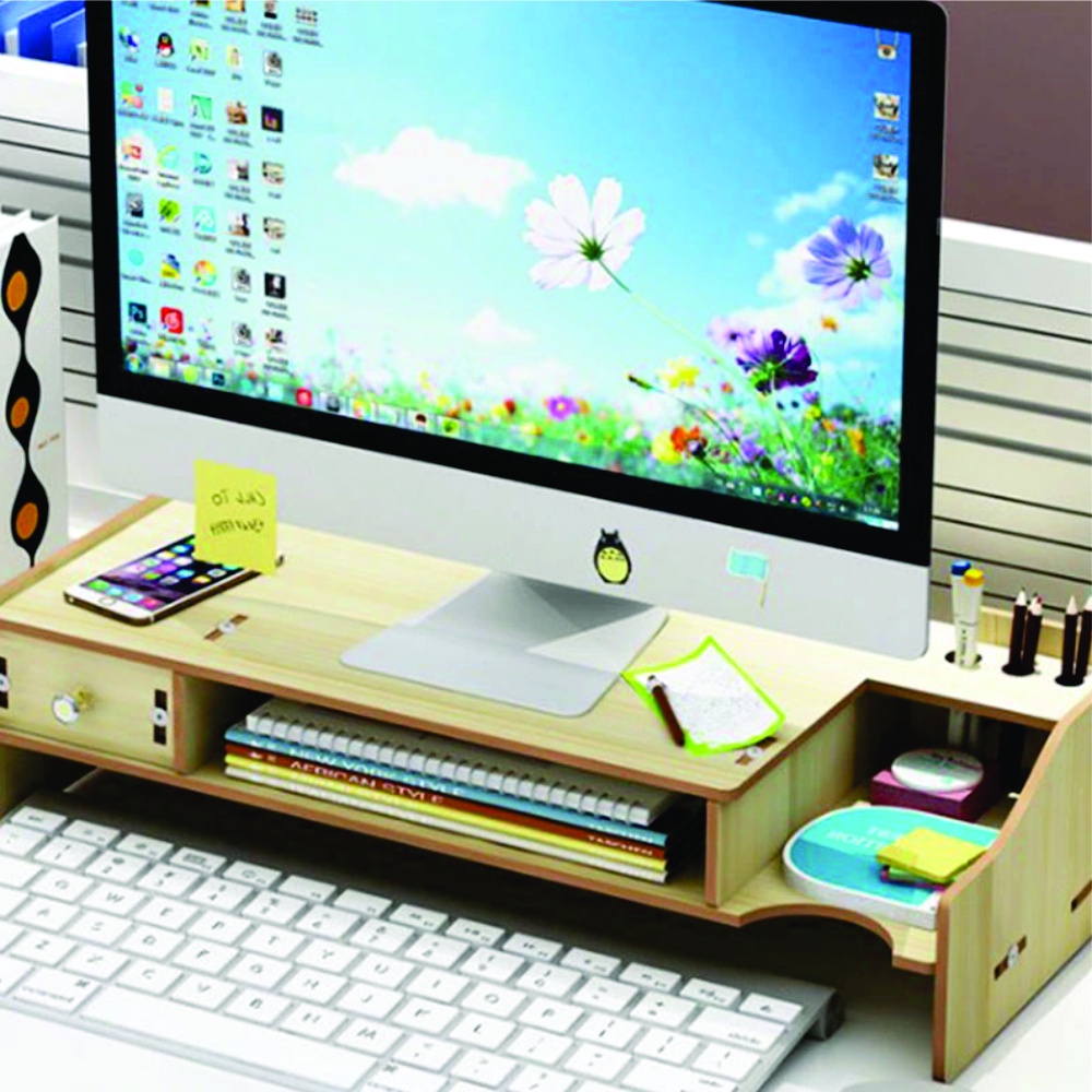 Giới thiệu Kệ đỡ màn hình, Kệ máy tính kệ sách kệ hồ sơ để bàn kèm cắm viết bằng gỗ KMT6