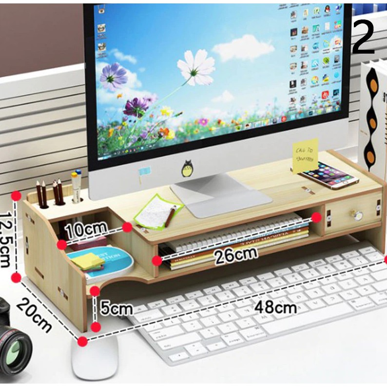 Nhà cửa & Đời sống > Sắp xếp nhà cửa > Kệ sách để bàn || Kệ đỡ màn hình vi tính giảm mỏi để bàn kèm cắm viết bằng gỗ KMT2 - Tặng kèm 1 móc khóa lọ - Vân SángCòn hàng