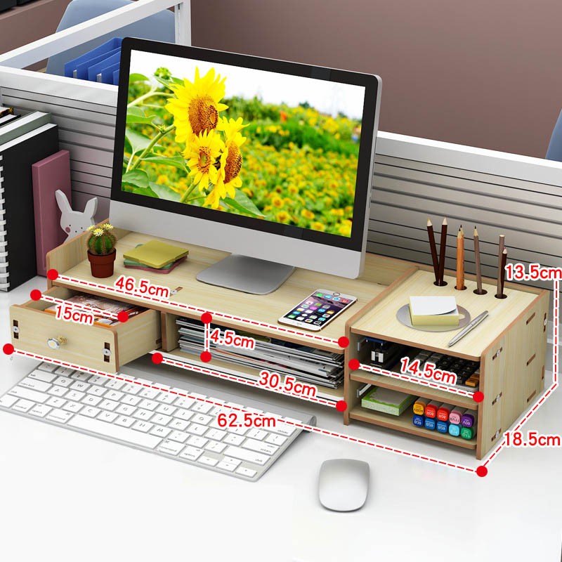 Kệ đỡ màn hình vi tính giảm mỏi kệ hồ sơ để bàn kèm cắm viết KMT1 có ngăn kéo - Tặng 1 móc khóa lọ - Vân Sáng