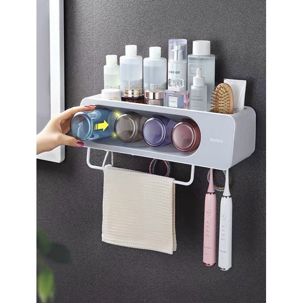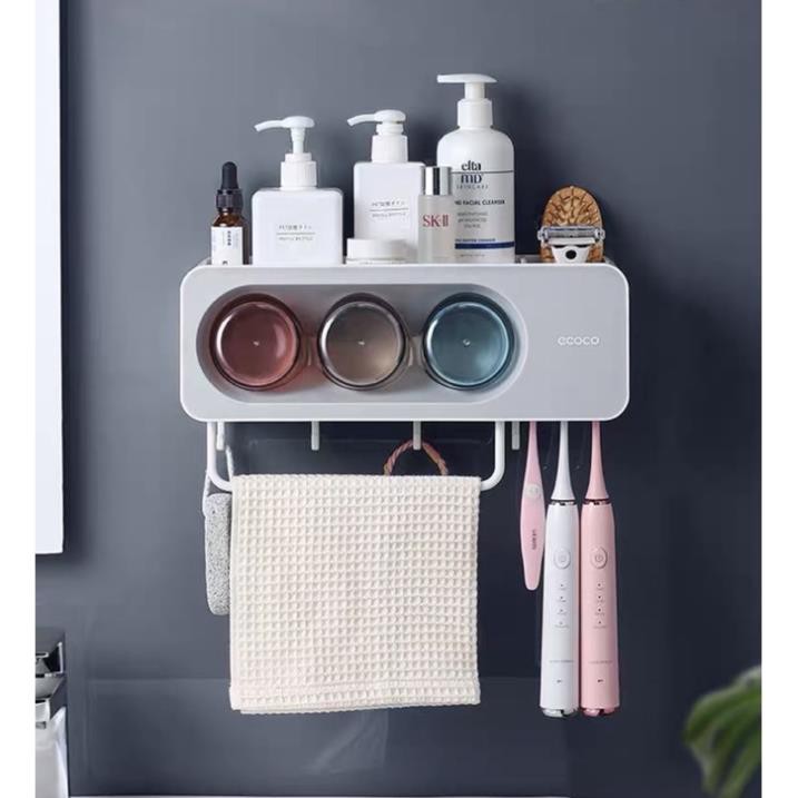 Nhà cửa & Đời sống > Đồ dùng phòng tắm > Kệ đựng bàn chải, kệ nhả kem đánh răng || kệ đồ phòng tắm, cắm chải kèm cốc dính cường lực ecoco mẫu mới nhất GDTHCòn hàng