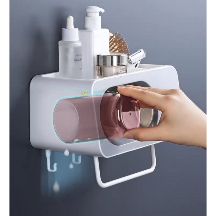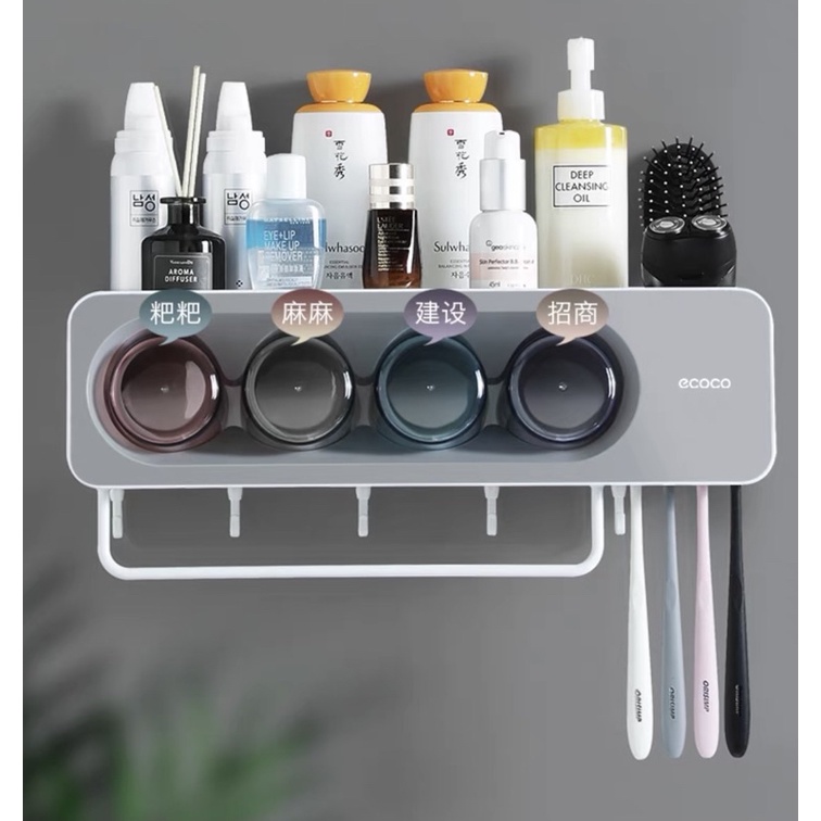 Nhà cửa & Đời sống > Đồ dùng phòng tắm > Kệ đựng bàn chải, kệ nhả kem đánh răng || kệ đồ phòng tắm, kệ cắm chải kèm cốc dính cường lực ecoco mẫu mới nhấtCòn hàng