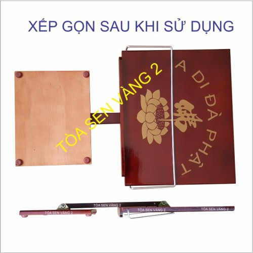 + Mặt kệ in hình bông sen và chữ A DI ĐÀ PHẬT, có thanh kim loại kẹp giữ trang sách
