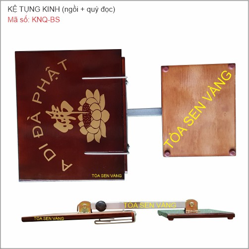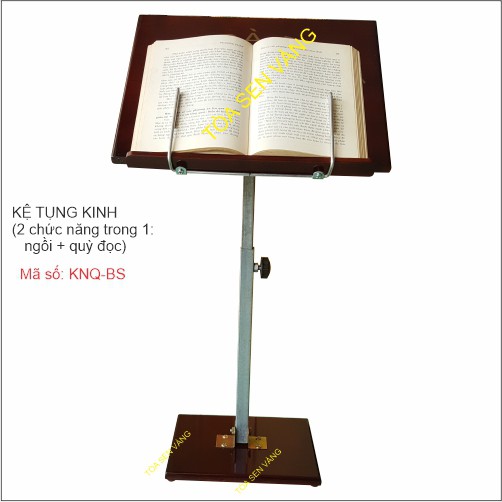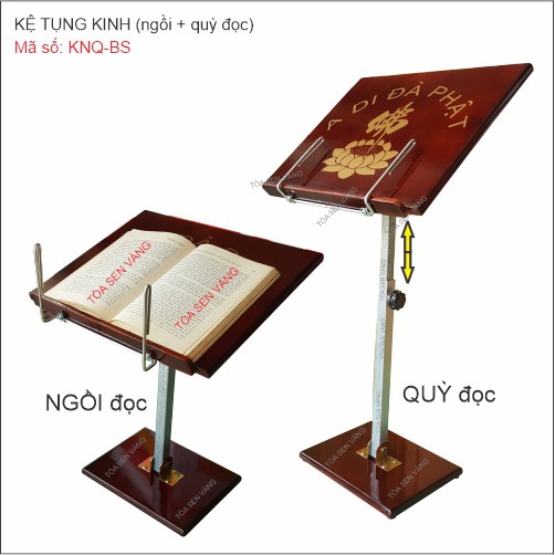 Giới thiệu Kệ Đọc Kinh - in bông sen hoặc in bánh xe pháp - có thể điều chỉnh độ cao, sơn bóng mờ hạn chế bị trầy xước