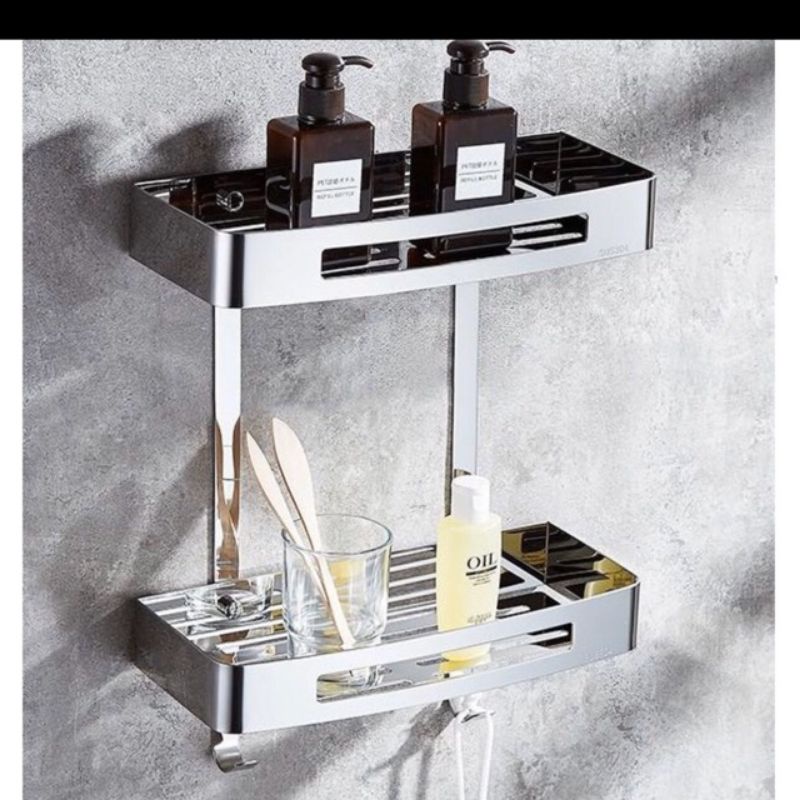 Giới thiệu Kệ đôi ốp tường nhà vệ sinh 2 tầng để dầu gội sữa tắm Inox 304 bóng