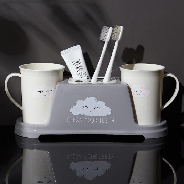 - Bộ cốc đánh răng kèm khay đựng thông minh, kệ để bàn chải và kem đánh răng ĐÁM MÂY đa năng tiện ích