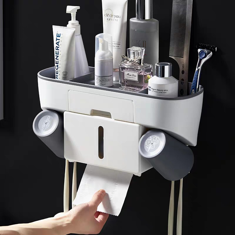 Nhà cửa & Đời sống > Đồ dùng phòng tắm > Kệ đựng bàn chải, kệ nhả kem đánh răng || Kệ Đựng Bàn Chải Đánh Răng Dán Tường Phòng Tắm Sang Trọng, Kệ Để Ly Súc Miệng Nam Châm -Tặng Kèm 2 CốcCòn hàng