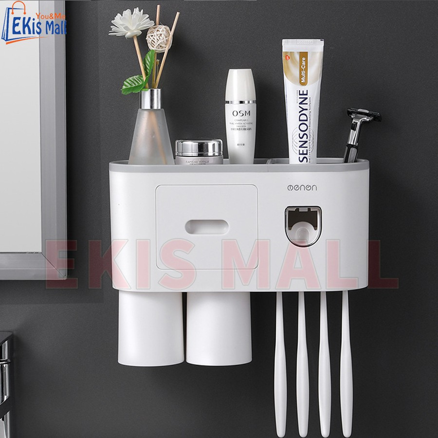 Kệ đựng bàn chải đánh răng kèm hộp nhả kem cao cấp Giá treo bàn chải đánh răng dán tường chịu lực