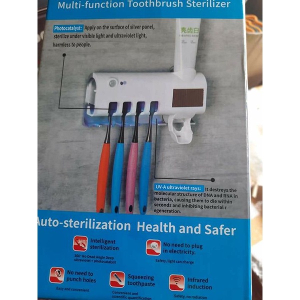 Mã sp: Kệ đựng bàn chải khử khuẩn-16118Để ngăn ngừa "BỆNH TỪ MIỆNG MÀ VÀO" xin hãy thay ngay ống đựng bàng chải ĐR truyền thống trong mỗi gia đình. Hãy thử kiểm tra cán của bàn chải đánh răng, xem có mốc đen lên không ạ??? Nếu k cắm bàn chải ở nơi khô ráo thì bàn chải rất dễ bị mốc,mất vs lắm các bác ơi. E kệ này sử dụng ánh sáng xanh để khử khuẩn và đặc biệt kèm luôn cả dụng cụ nhả kem. Quá tiện cả nhà nhỉ???