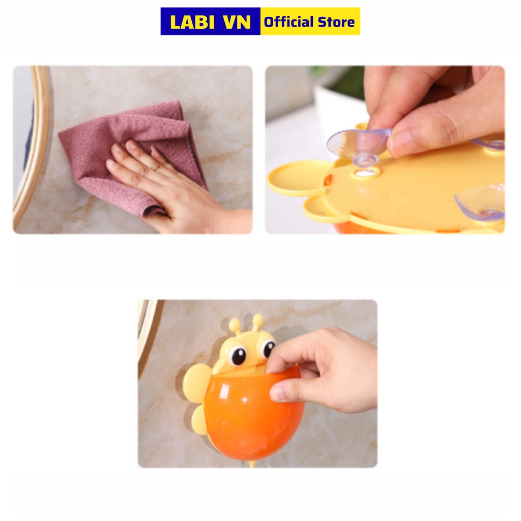 Giới thiệu Kệ để bàn chảy đánh răng dán tường cho trẻ em siêu cool hình con ếch, bọ cam LABI VN LB216