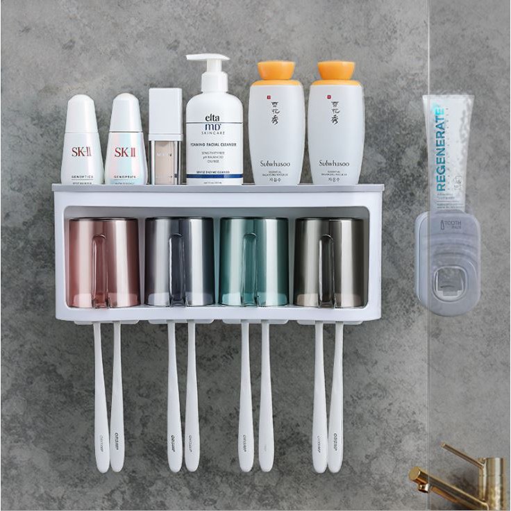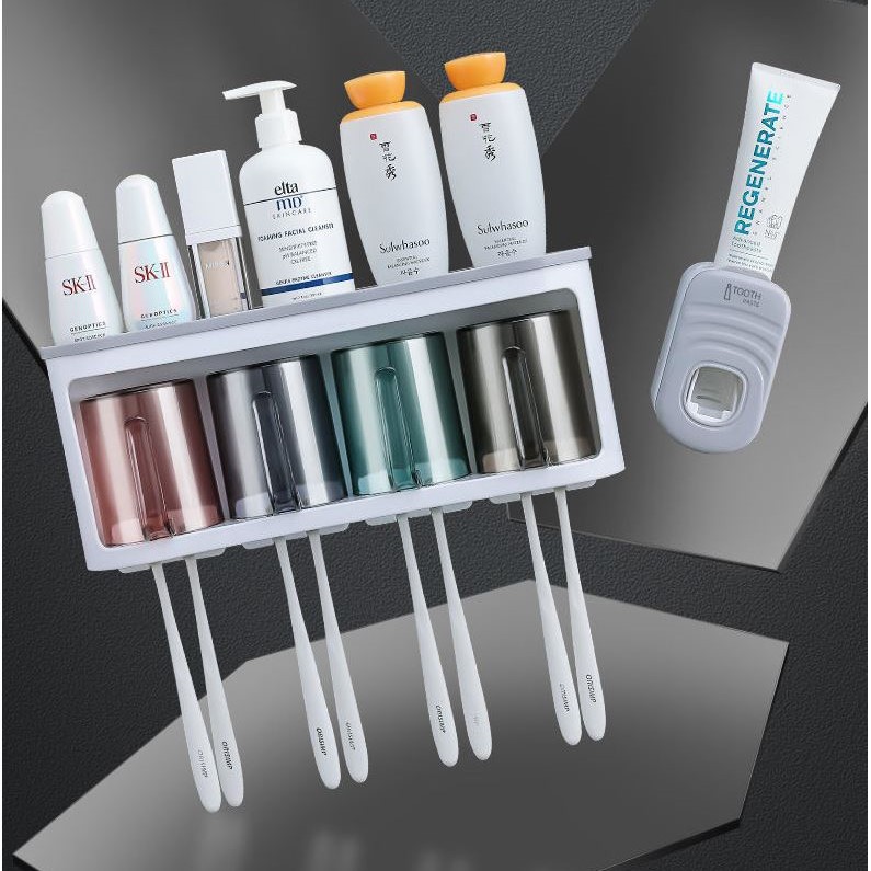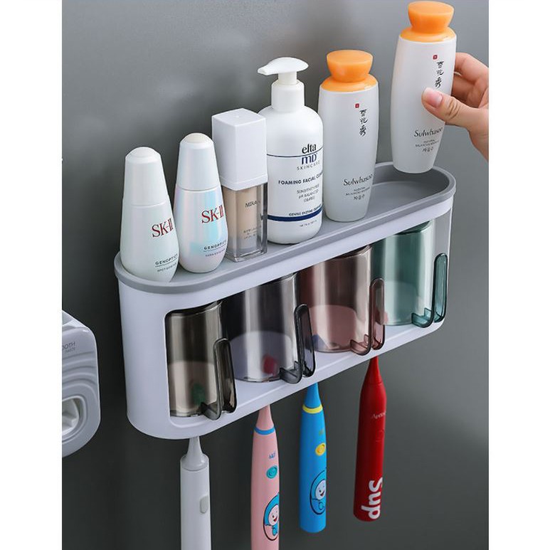 Kệ đựng bàn chải , đựng cốc , để đồ dán tường nhà tắm siêu tiện dụng , siêu chắc , sang trọng Rack