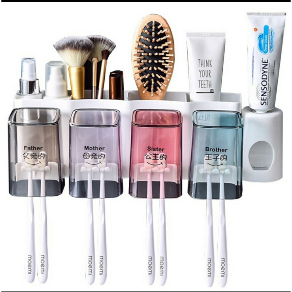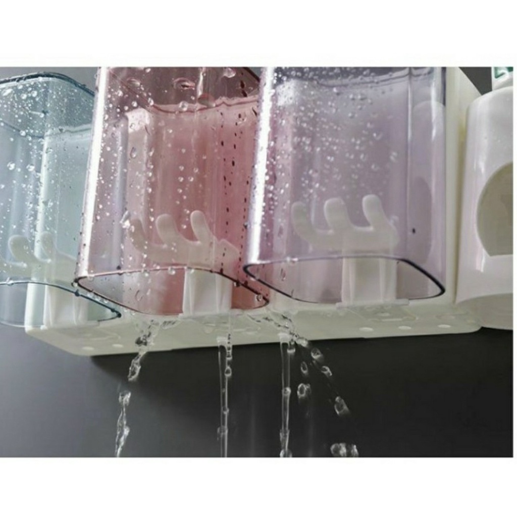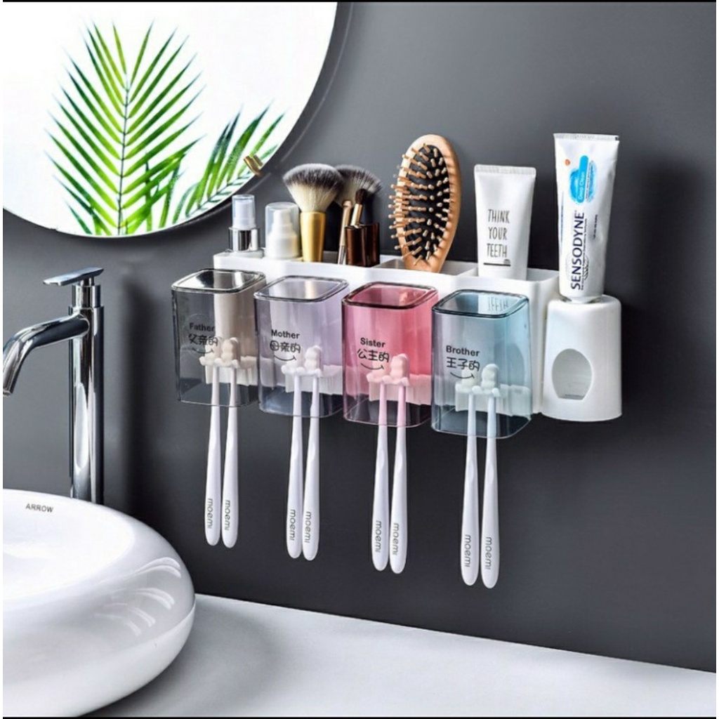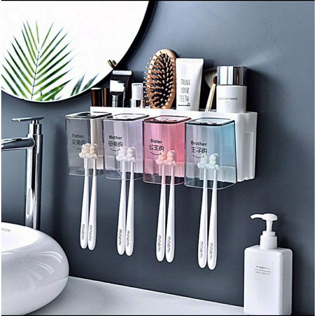 Kệ đựng bàn chải kem đánh răng 4 ngăn kèm 4 ly xinh xắn