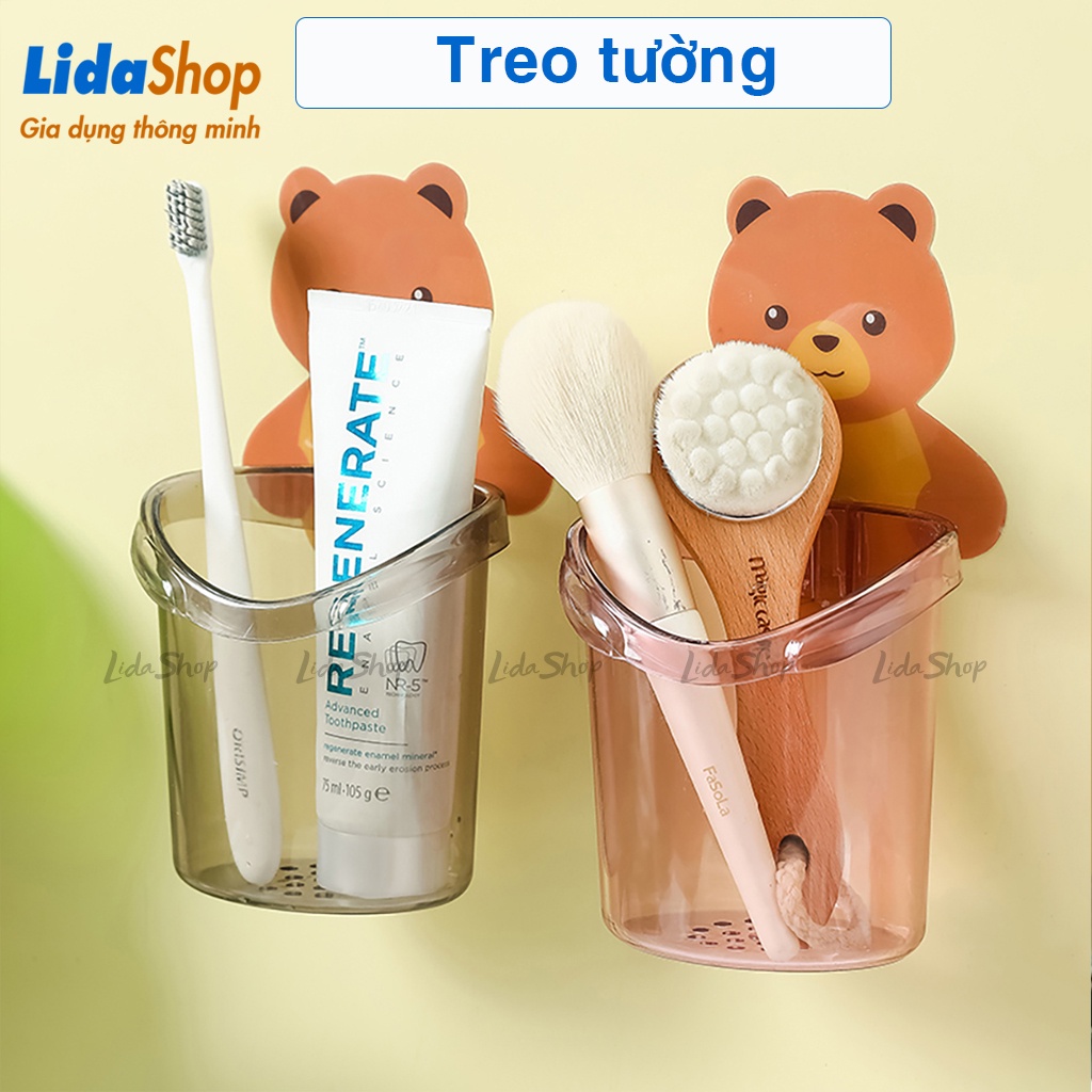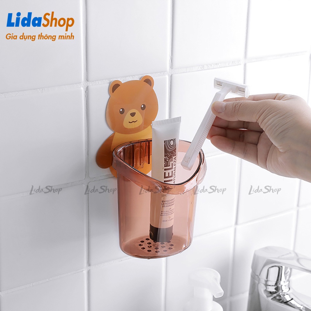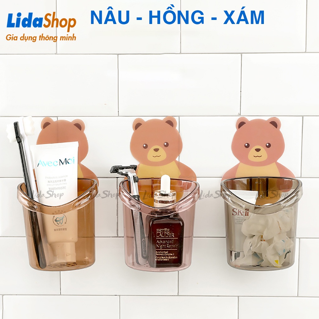 Kệ đựng bàn chải kem đánh răng dán tường Lidashop, giỏ treo đựng đồ phòng tắm mẫu GẤU CUTE