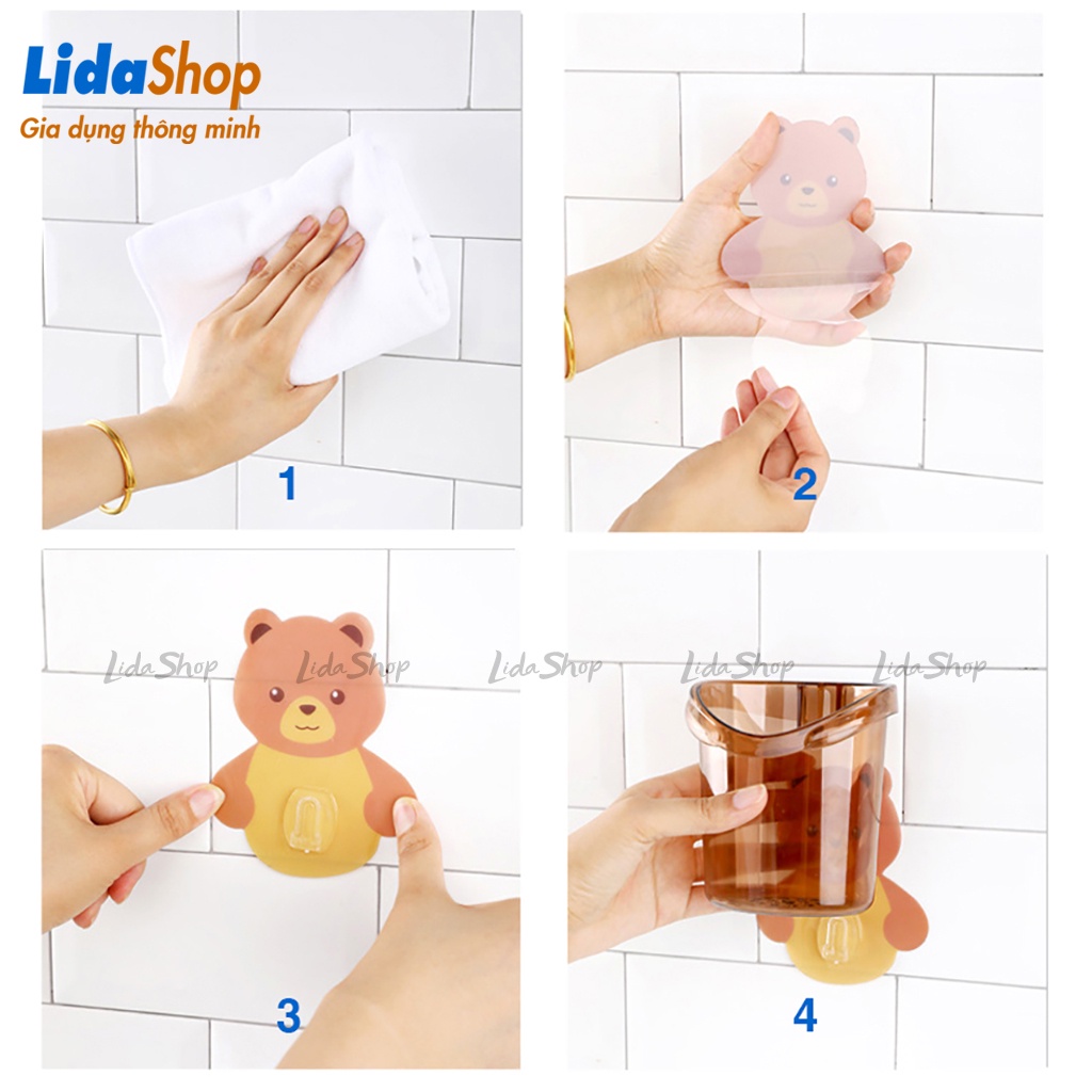Kệ đựng bàn chải kem đánh răng dán tường Lidashop, giỏ treo đựng đồ phòng tắm mẫu GẤU CUTE* HƯỚNG DẪN LẮP ĐẶT
