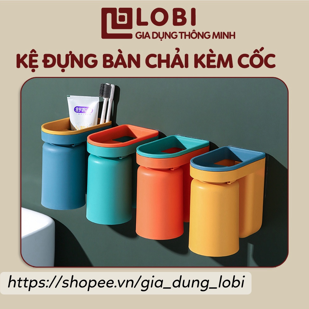 Kệ đựng bàn chải kem đánh răng kèm cốc dán tường để đồ phòng tắm tiện lợiĐặc điểm nổi bật: