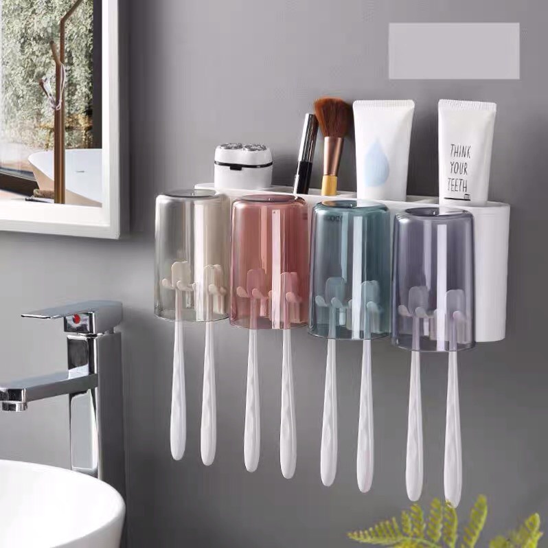 Kệ đựng bàn chải thông minh 4 cốc cực chắc chắn ( không kèm nhả kem)- Gia Dụng SAPOO