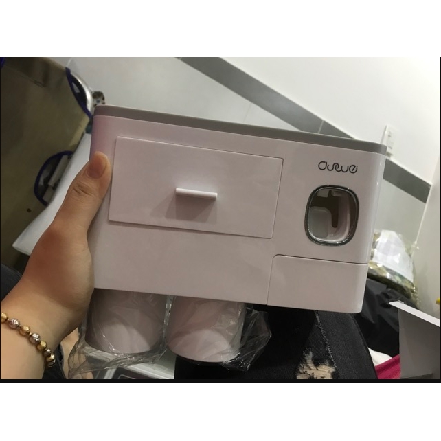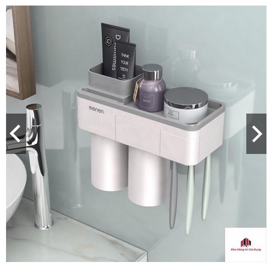 Kệ đựng bàn chải thông minh 2 cốc kèm nhả kem dính tường cực chắc chắn