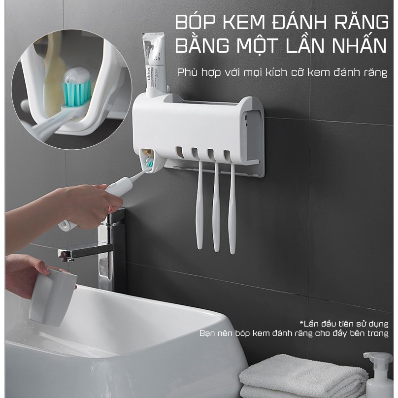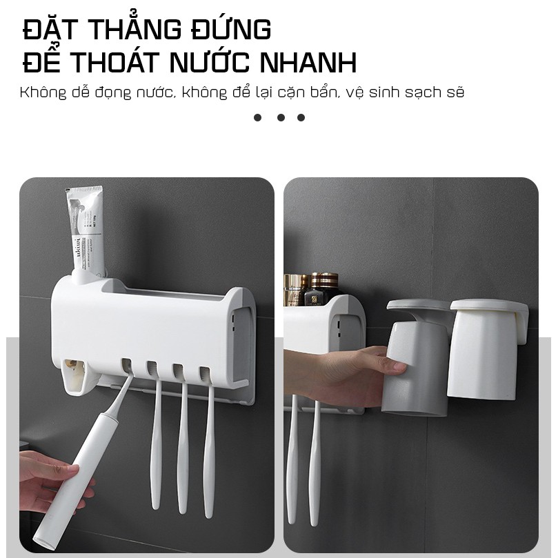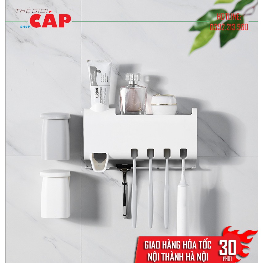 Kệ Đựng Bàn Chải Thông Minh Tự Động Lấy Kem Đánh Răng Kèm 2 Cốc Nam Châm Cao Cấp
