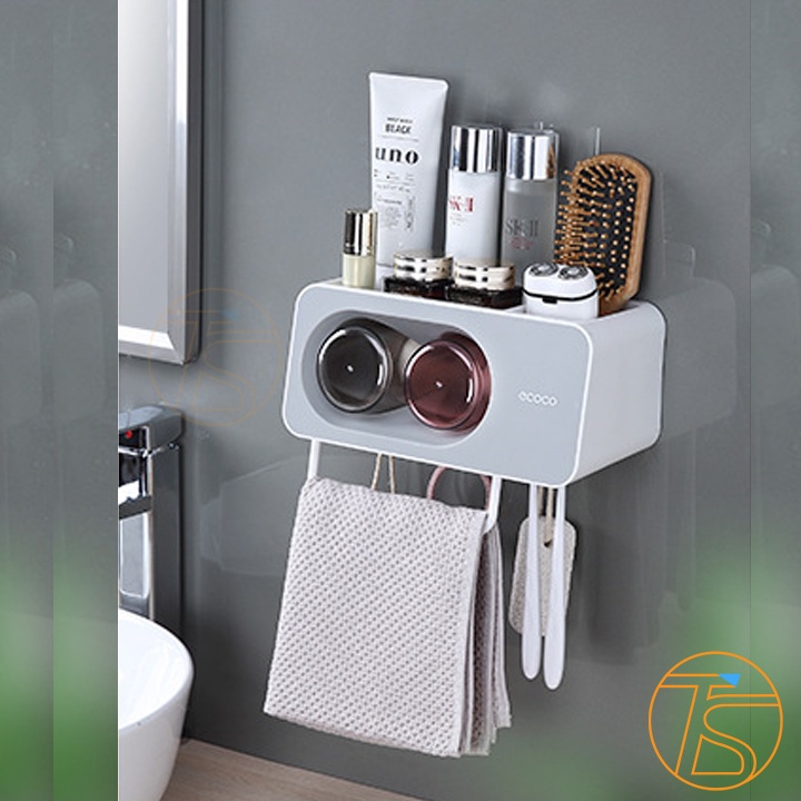 Giới thiệu Kệ Đựng Bàn Chải Trong Nhà Tắm Dán Tường Có Kèm 2 Cốc Ecoco E2111 Đa Năng