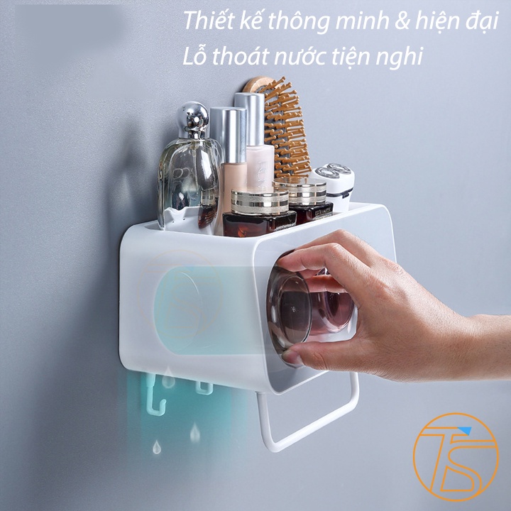 Kệ Đựng Bàn Chải Trong Nhà Tắm Dán Tường Có Kèm 2 Cốc Ecoco E2111 Đa Năng