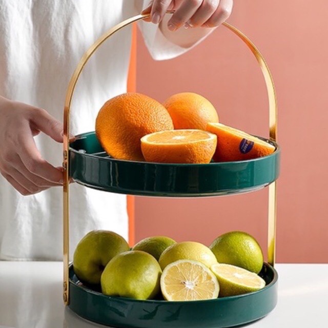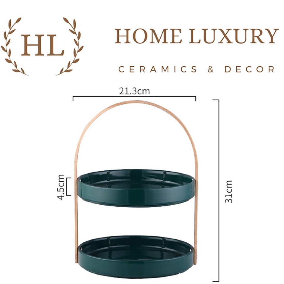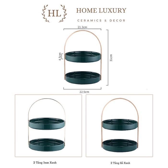 Nhà cửa & Đời sống > Bộ đồ bàn ăn > Khay, tấm lót bàn ăn || kệ đựng bánh kẹo sứ xanh tay gỗ/ tay kim loại mạ vàng hình tròn mẫu mới HLCòn hàng