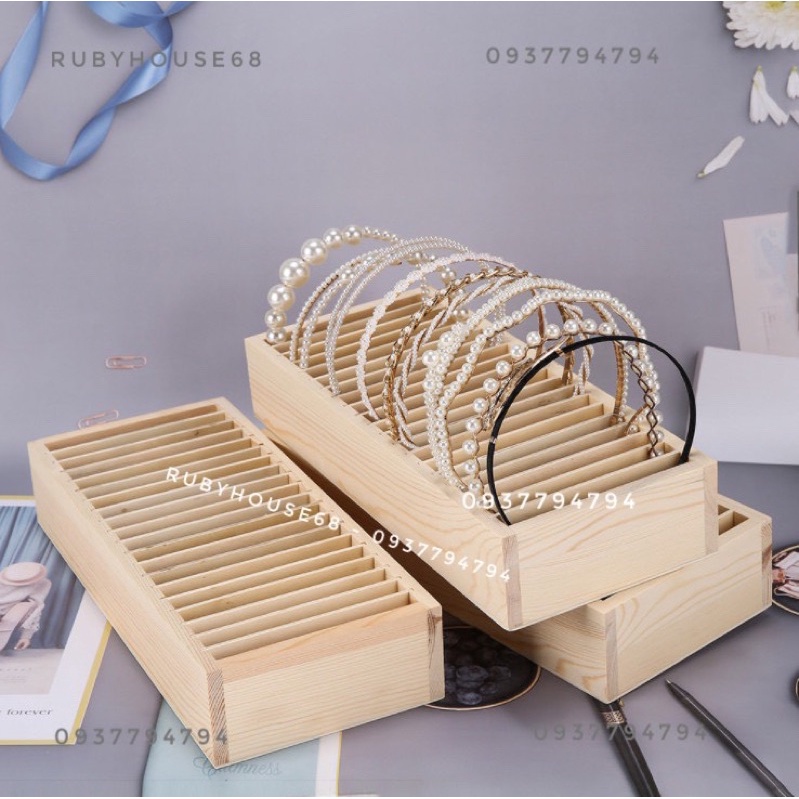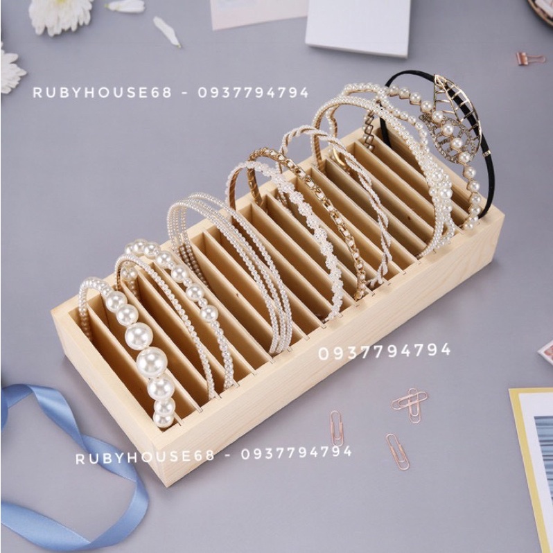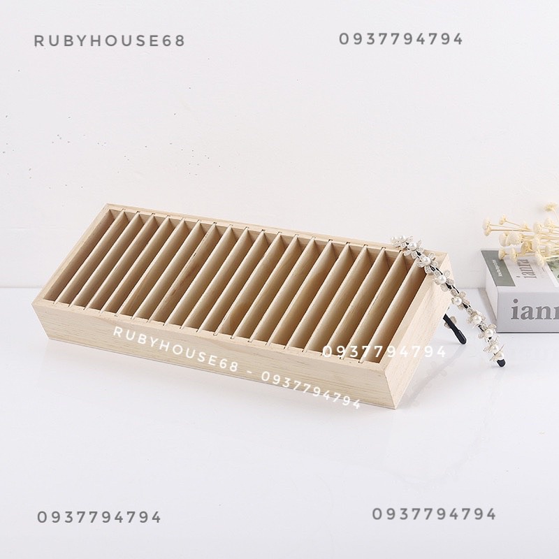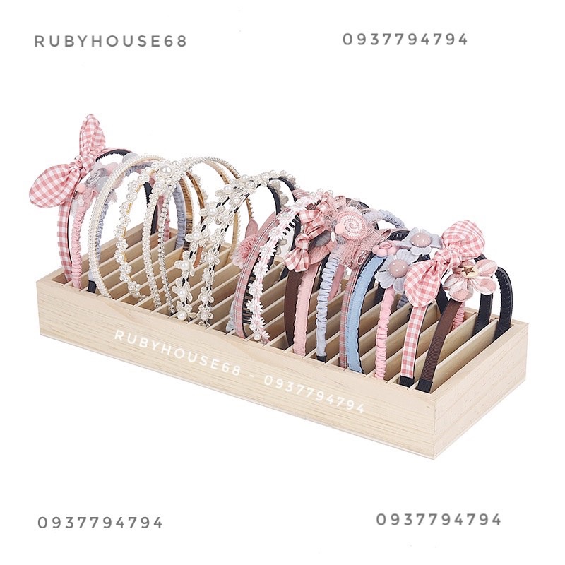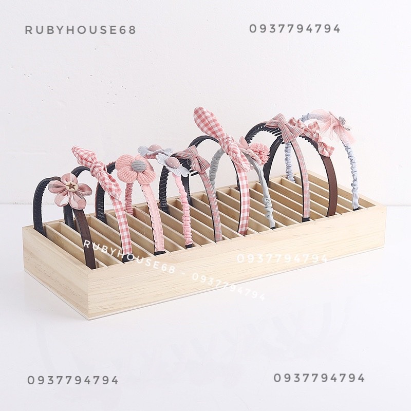 Kệ đựng bờm tóc gỗ xinh xắn , 20 ngăn để được 20 cài- Cài bản to / nhỏ đều để được nha , phần rãnh ngăn tháo ra được nên cài to vẫn ok ạ