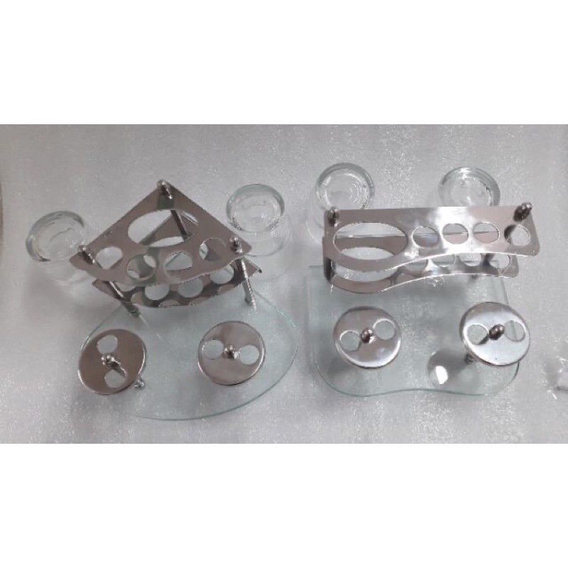 Kệ để được 1 túyp kem đánh răng và 4 bàn chải đánh răng và 02 ly thủy tinh