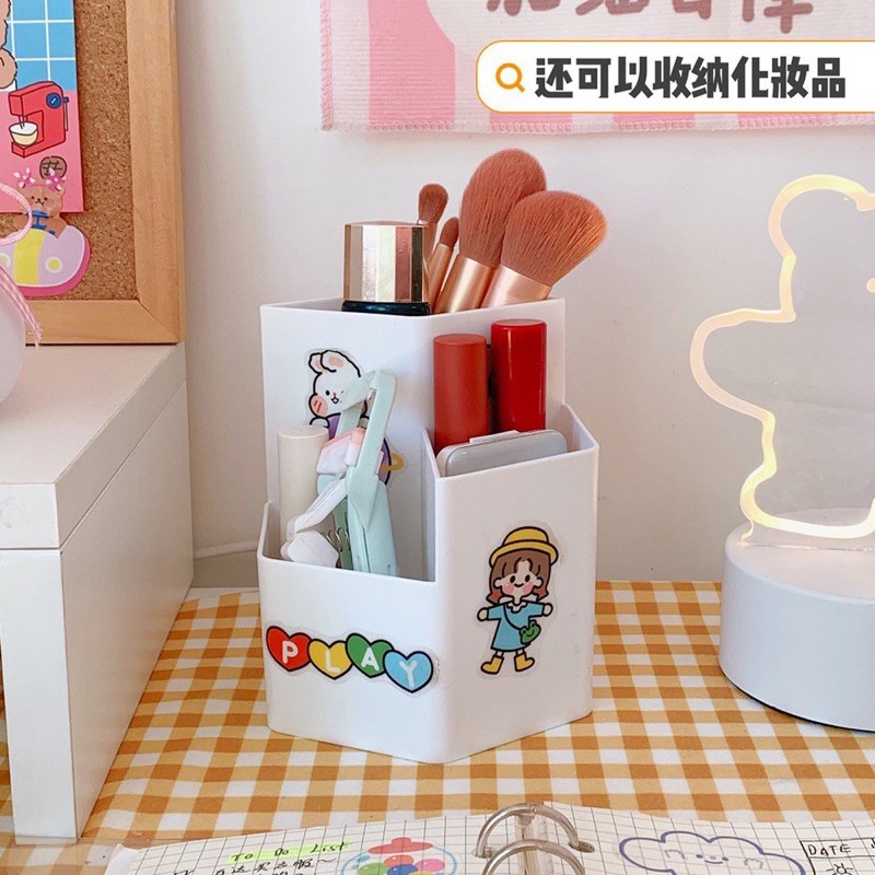 Kệ đựng bút nhựa dày cao cấp 3 góc đế xoay 360 độ decor trang trí bàn học hàn quốc