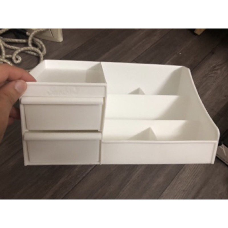 - Tủ đựng mỹ phẩm được thiết kế nhỏ gọn, cấu tạo các ngăn đựng khoa học với 3 tầng và 5 ngăn nhỏ. Tủ còn có thêm 2 ngăn kéo, để được nhiều đồ tiện dụng.
