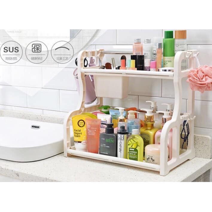 - Chất liệu nhựa bền bỉ sử dụng bền lâu, với thiết kế 4 tầng mỗi tầng mang chức năng riêng cho sức chứa rộng rãi; tầng cuối là giỏ đựng quần áo bẩn có tay cầm dễ dàng hơn trong việc giặt giũ.
