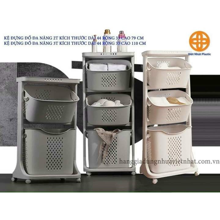 Kệ đựng đồ 3 tầng đa năng, Rổ đựng quần áo 3 tầng có bánh xe nhựa Việt Nhật
