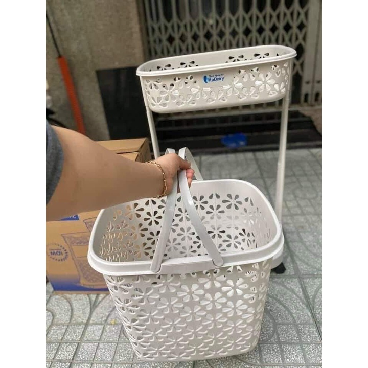 . Giỏ đựng đồ tầng dưới có thể tách ra để dùng độc lập rất dễ dàng, có quai xách tiện lợi.