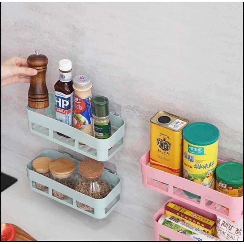 Giới thiệu Kệ đựng đồ đa năng nhà tắm, nhà bếp hình CHỮ NHẬT tặng kèm miếng dán - Khay kệ nhựa chữ nhật dán tường nhà tắm nhà bếp
