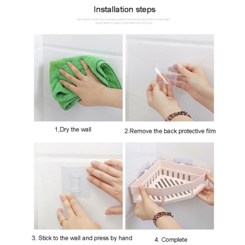 - Kệ góc tam giác dán tường thiết kế các khe hở dễ thoát nước, nhanh khô. Được thiết kế mịn các cạnh không làm tổn thương da. Kiểu dáng hình tam giác giúp tận dụng tiết kiệm không gian phòng tắm. Màu sắc bắt mắt, hài hòa với không gian nhà bạn.