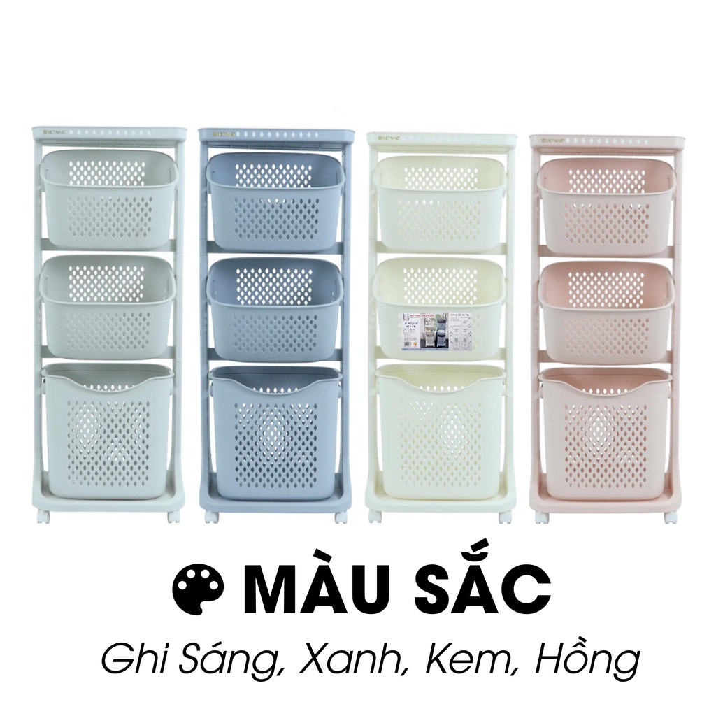 Kệ đựng đồ đa năng Plastic 3 tầng có bánh xe Việt Nhật