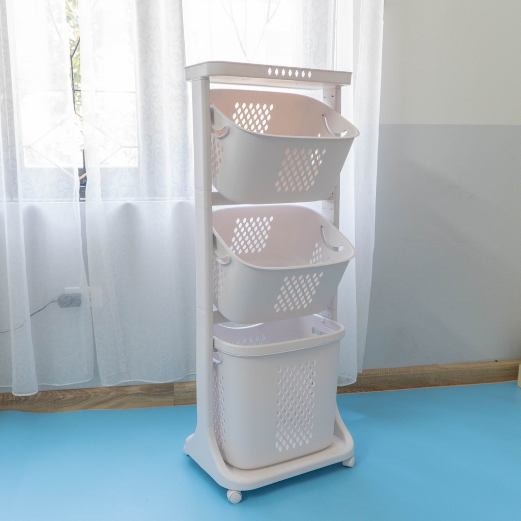 Với thiết kế chắc chắn, tinh tế & có 4 bánh xoay 360 độ giúp di chuyển dễ dàng, xe để đồ giặt 2 là sản phẩm lí tưởng giúp mẹ để quần áo bẩn và các đồ dùng khác một cách sạch sẽ & lịch sự cũng như vận chuyển dễ dàng đến nơi cần giặt.- Chất liệu: Nhựa PP cao cấp rất dày dặn & chắc chắn.