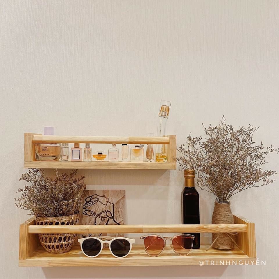 kệ đựng đồ lưu niệm cây cảnh mini gia vị , giá sách treo tường trang trí gỗ thông tự nhiên kích thước 50x12x10