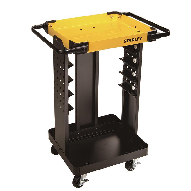 Điều chỉnh đươc 4 vị trí lưu trử, có tay cầm bên để điều chỉnh việc di chuyển, hoàn thiện sản phẩm tốt cho độ bền cao. Bộ lưu trữ công cụ dọc 2 mặt trên giá trên cùng 4 bánh xe xoay cho dễ vận hành. Khi sử dụng kệ đựng đồ nghề Stanley sẽ giúp bạn sắp xếp, cất giữ dụng cụ được gọn gàng hơn, tránh mất mát dụng cụ trong quá trình sử dụng.