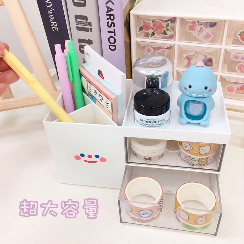 Kệ đựng đồ văn phòng phẩm 2 ngăn kéo trong suốt phong cách Hàn Quốc C-22