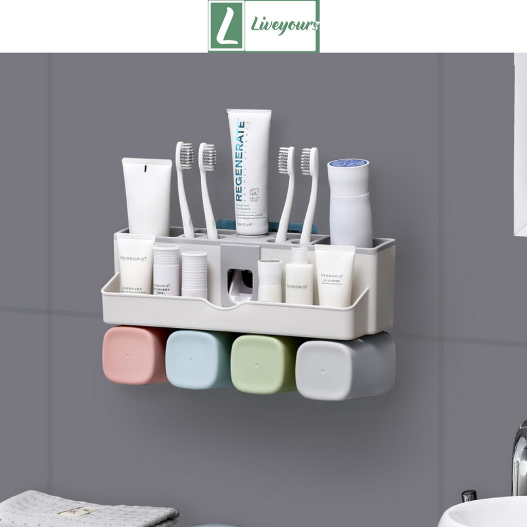 Nhà cửa & Đời sống > Đồ dùng phòng tắm > Kệ đựng bàn chải, kệ nhả kem đánh răng || Kệ Đựng Kem Đánh Răng Nhả Kem Đánh Răng Tự Động Kèm Cốc Cao Cấp - Tặng Kèm Ly - LiveyoursCòn hàng