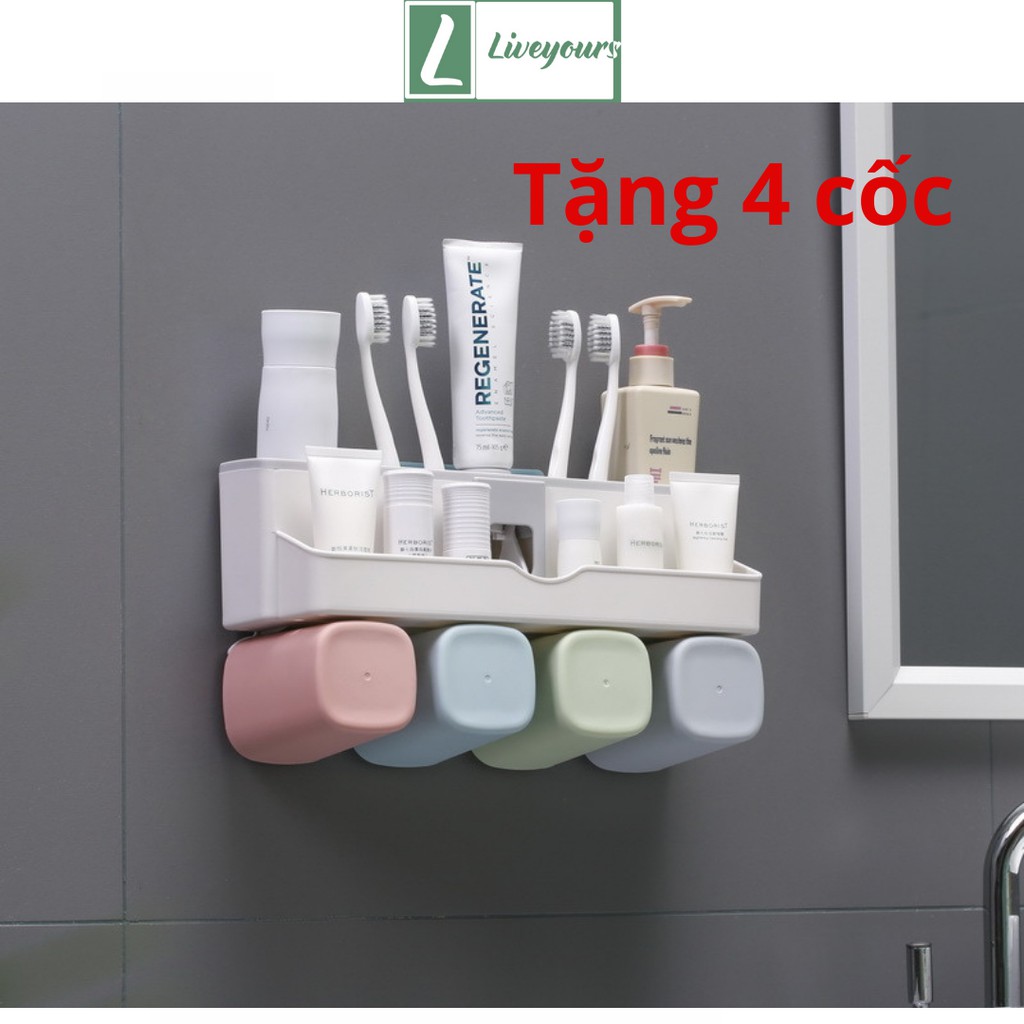 Kệ Đựng Kem Đánh Răng Nhả Kem Đánh Răng Tự Động Kèm Cốc Cao Cấp - Tặng Kèm Ly - Liveyours