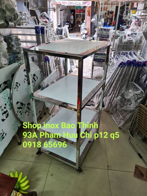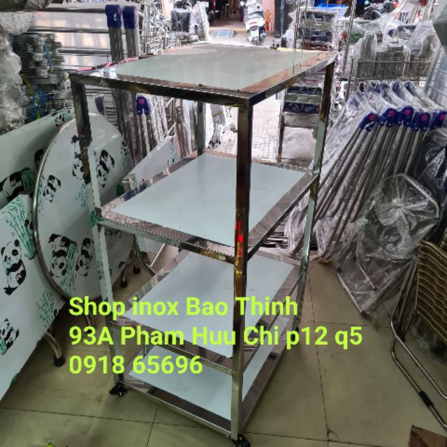 Kệ đc thiết kế từ inox 201 cao cấp chống gỉ sét,có thể đựng lò nướng, lò vi sóng, máy ép, nồi cơm điện 🍚 ...Dễ ve sinh chùi rữa,co bánh xe de dàng duy chuyển