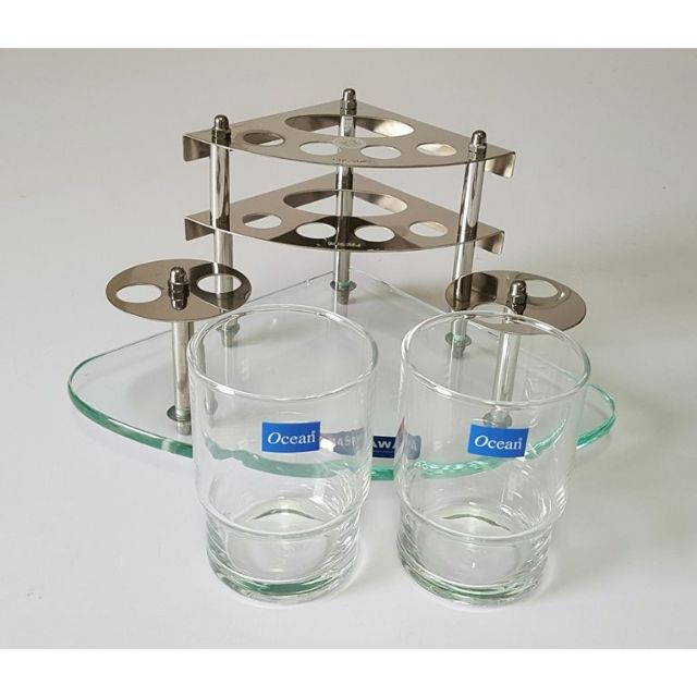 Kệ để được 1 túyp kem đánh răng và 4 bàn chải đánh răng và 02 ly thủy tinh