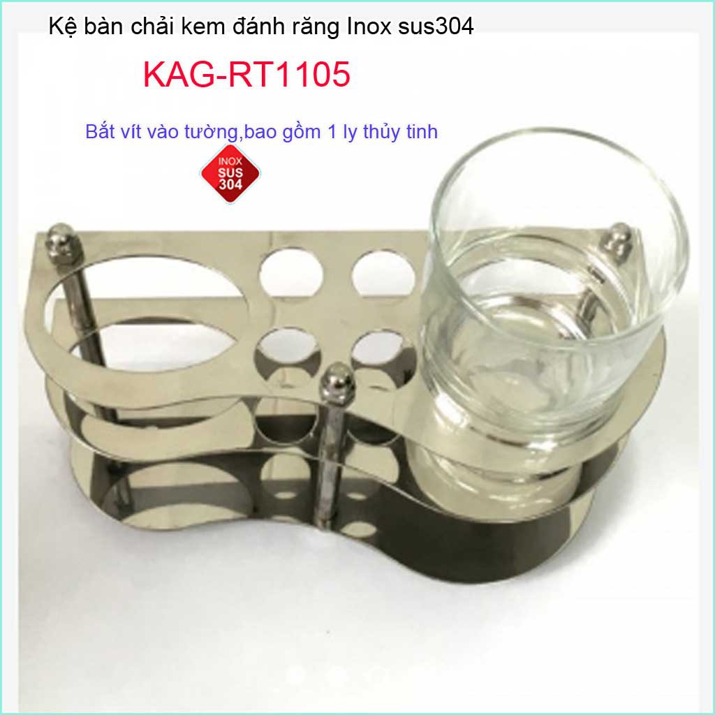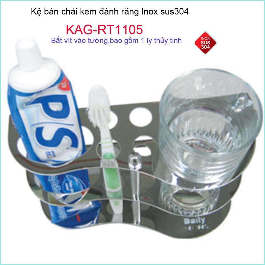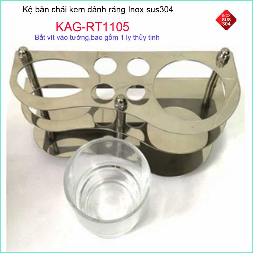 Kệ bàn chải kem đánh răng inox 304 KAG-RT1105 + Ly thủy tinh trọn bộ mẫu mới tiện dụng sử dụng tốt