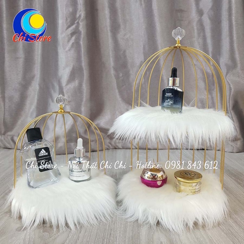 Kệ Đựng Mĩ Phẩm Lồng Chim Kèm Thảm Hồ Ly Để Kệ, Kệ Decor Trang Trí Siêu Xinh