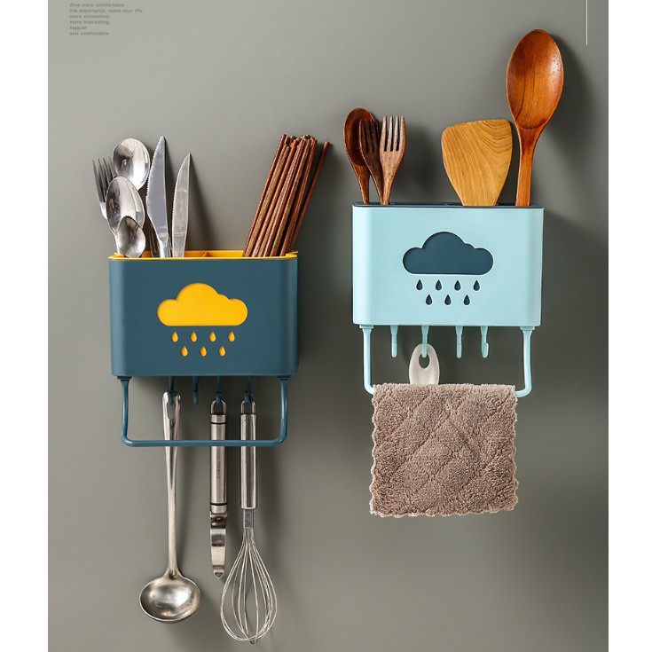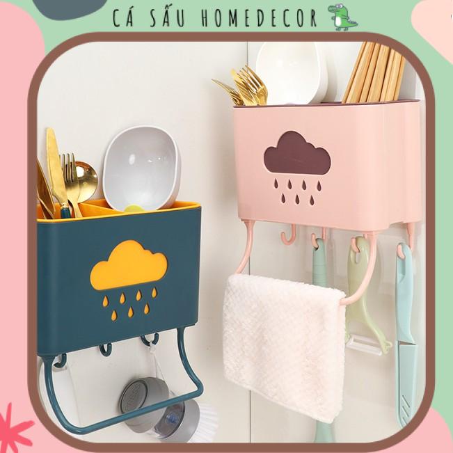 Kệ Đựng Muỗng Đũa Treo Tường Hình Đám Mây Dễ Thương Có Móc Treo Khăn Bếp