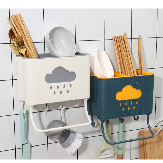 Giới thiệu Kệ Đựng Muỗng Đũa Treo Tường Hình Đám Mây Dễ Thương Có Móc Treo Khăn Bếp