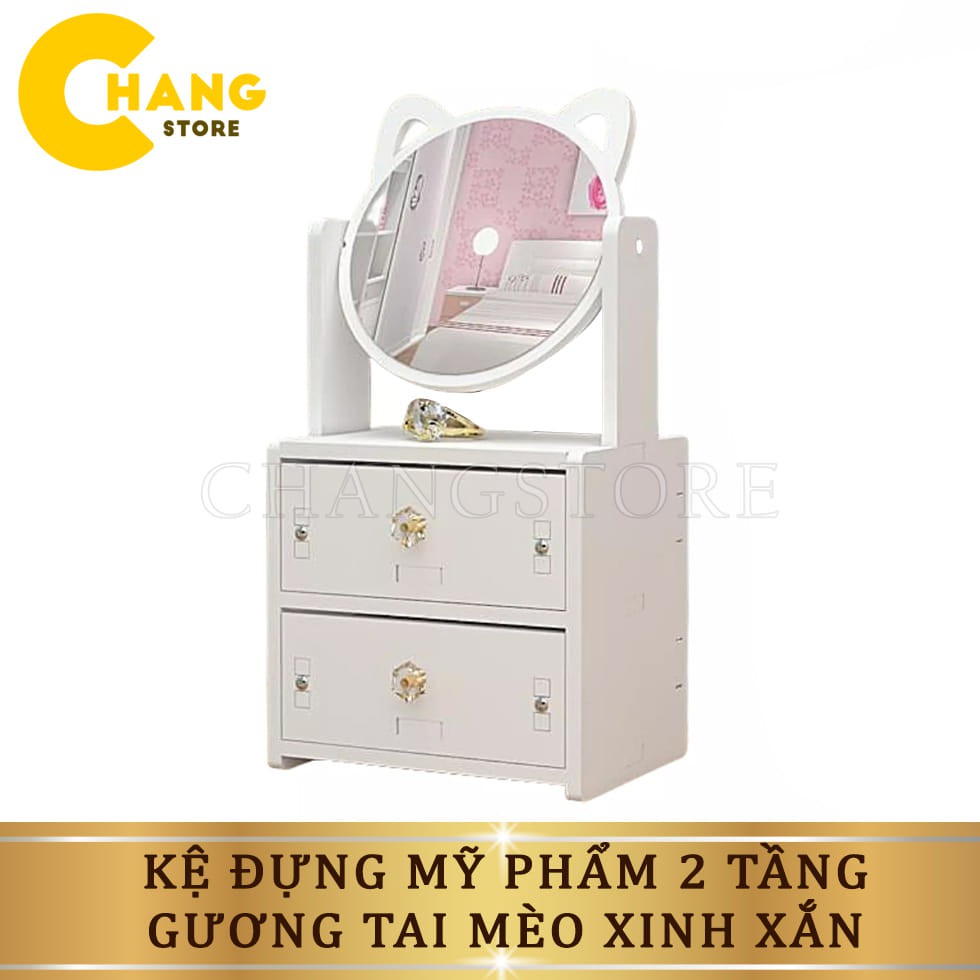 MÔ TẢ SẢN PHẨM :Kệ 2 tầng đựng được vô số đồ _ 1 gương tai mèo
