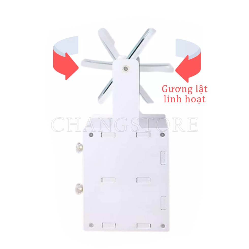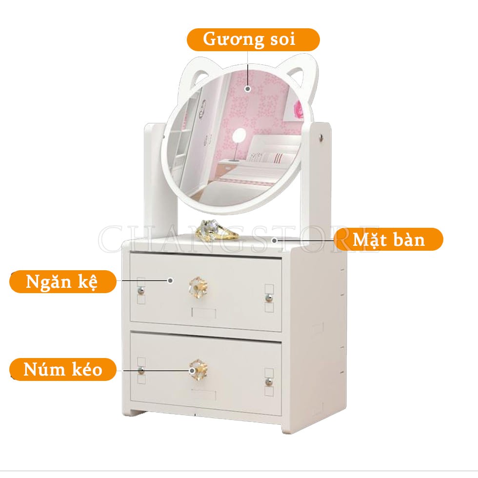 Kệ mỹ phẩm gỗ nhựa kèm gương tai mèo với các đặc tính như sau: