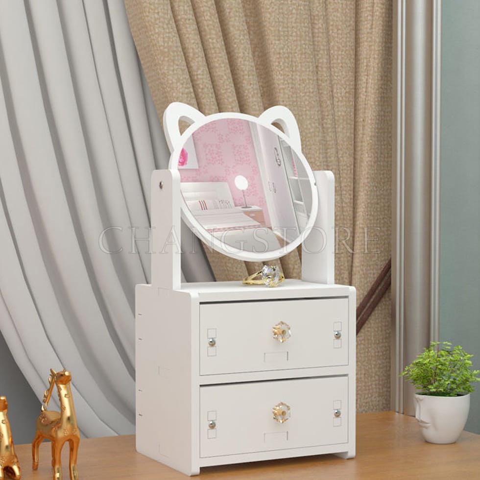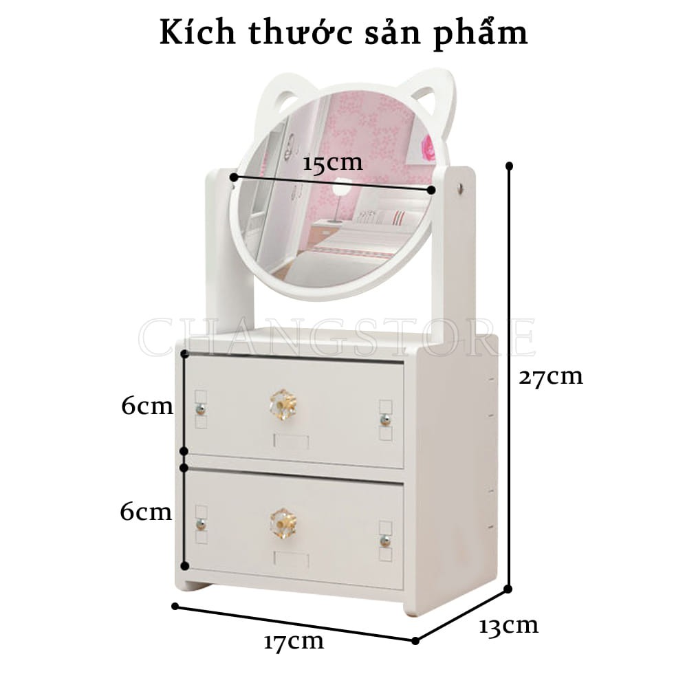 Nhà cửa & Đời sống > Trang trí nhà cửa > Khác || Kệ Đựng Mỹ Phẩm 2 Tầng Mini Gương Tai Mèo Xinh Xắn Đựng Nước Hoa, Son Phấn, Đựng Đồ Trang Điểm Thông MinhCòn hàng