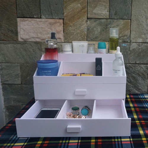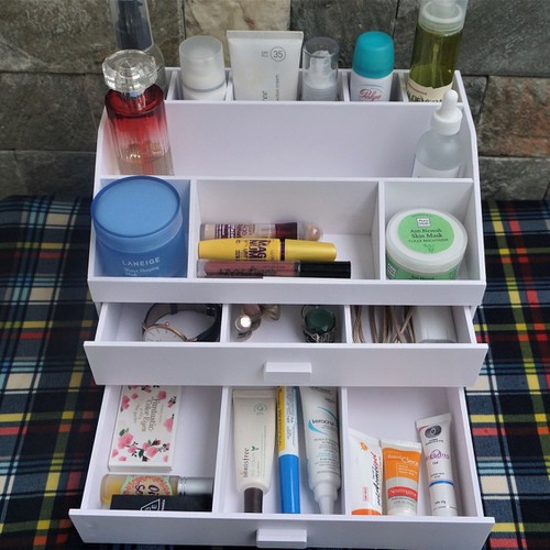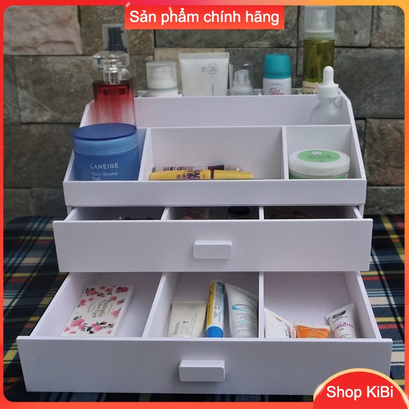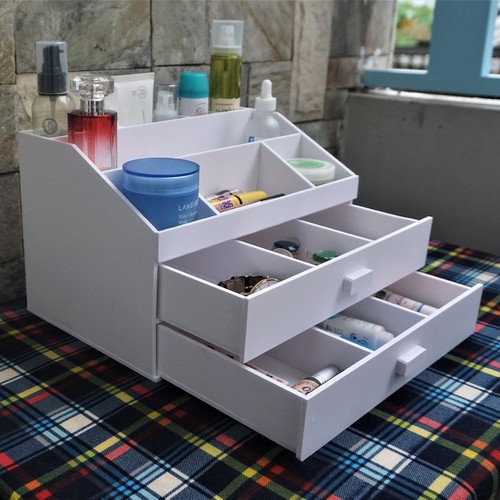Kệ đựng mỹ phẩm MS02 gọn nhẹ, tiện lợi, có hẳn 2 ngăn kéo lớn có chia hộc, nhiều ngăn nhỏ ở mặt trên.